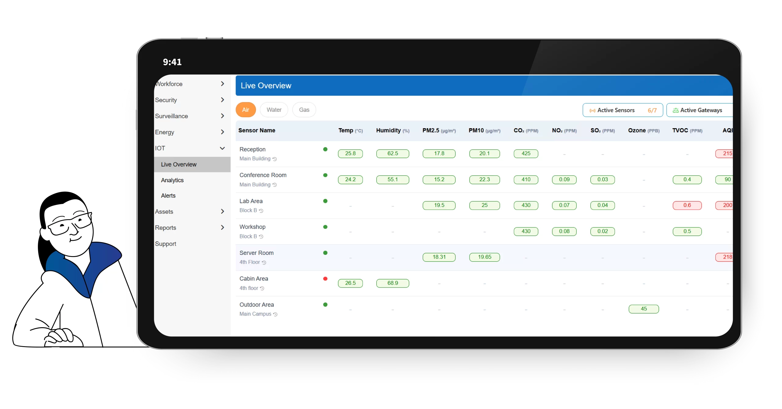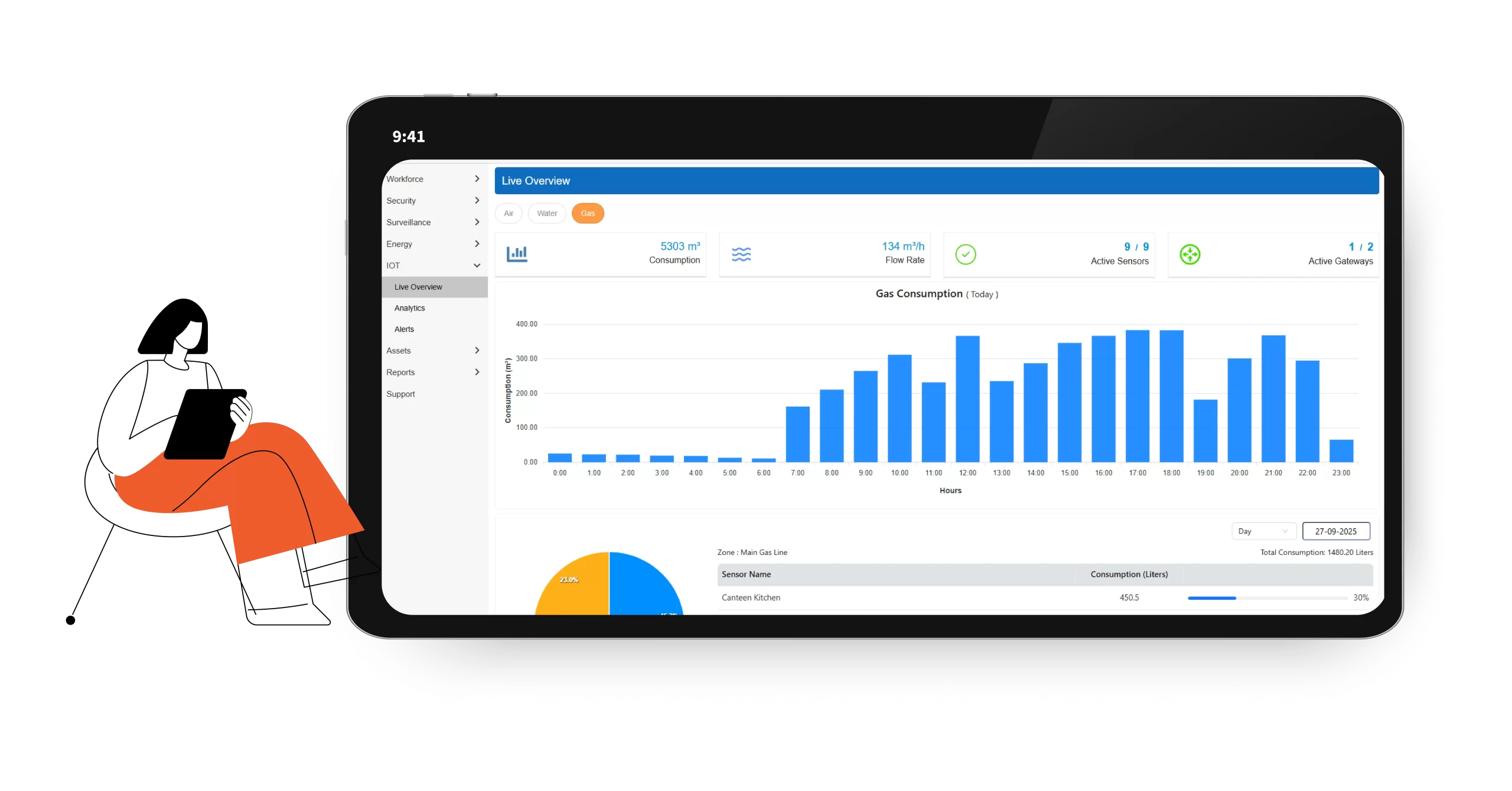 Smart IOT devices are used to measure, analyse and report various parameters for Water, Gas, Temperature & Humidity. These Smart IOT devices using sensors collect and transmit data via gateway to the TP SmartSol Application to provide real-time monitoring and analysis.
